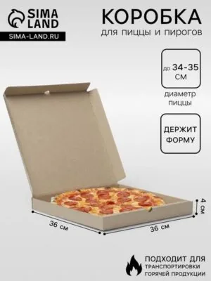 Коробка для пиццы, бурая, 36×36×4 см