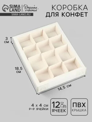 Главная » Все для дома Коробка под 12 конфет с ячейками «Белая», 14.5 х 18.5 х 3 см Просмотров 20 Коробка под 12 конфет с ячейками «Белая», 14.5 х 18.5 х 3 см Дарите Счастье
