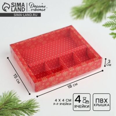 Главная » Все для дома Коробка под 4 конфеты и шоколад с ячейками «Снежинки» 18 х 15 х 3 см Просмотров 1 Коробка под 4 конфеты и шоколад с ячейками «Снежинки» 18 х 15 х 3 см Дарите Счастье