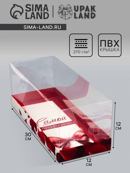 Коробка с прозрачной крышкой «Самой прекрасной» — это идеальное решение для стильной и презентабельной упаковки рулета или других кондитерских изделий.Размеры 30 х 12 х 12 см позволяют удобно разместить десерт, сохранив его свежесть и красоту.Прозрачная крышка подчеркивает изысканность вашего подарка, позволяя увидеть его без необходимости вскрывать упаковку.Лаконичный и универсальный дизайн с надписью «Самой прекрасной» придаст особую теплоту и внимание, подойдя для любого случая — от дня рождения до просто приятного сюрприза.Сделайте подарок вкусным и запоминающимся!