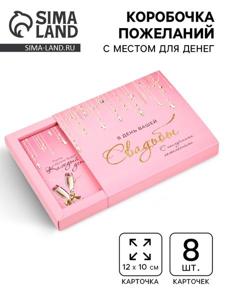 Главная » Все для дома Коробочка пожеланий с местом для денег «С днём свадьбы», 8 карточек Просмотров 1 Коробочка пожеланий с местом для денег «С днём свадьбы», 8 карточек Сима-ленд