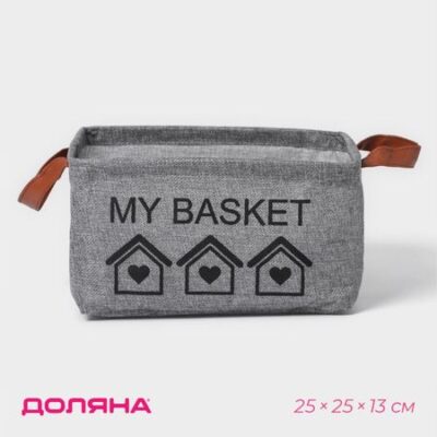 Корзина для хранения с ручками Доляна My Basket, 25×25×13, серая. Декоративная корзинка — прекрасное решение для того, кто желает освежить облик своего жилища. Корзинка создана для людей, которые ценят не только комфорт и порядок в доме, но и нестандартные решения в интерьере. <ul> <li> Компактный размер позволяет корзинке органично вписываться в любое пространство: в гостиную, кухню или ванную комнату.</li> <li> Изделие сочетает изящество и практичность: у каждой мелочи будет свое место!</li> <li> Универсальная корзина для хранения подойдет для любых домашних вещей, особенно одежды, белья и игрушек.</li> <li> Хорошо держит форму, легко складывается. В сложенном виде занимает мало места в отличии от стандартных ящиков и коробок для хранения.</li> <li> Прочная, легкая корзина станет незаменимым помощником в организации пространства квартиры или дома!</li> <li> Удобную корзину с ручками можно при необходимости переносить в любое место.</li> </ul>
