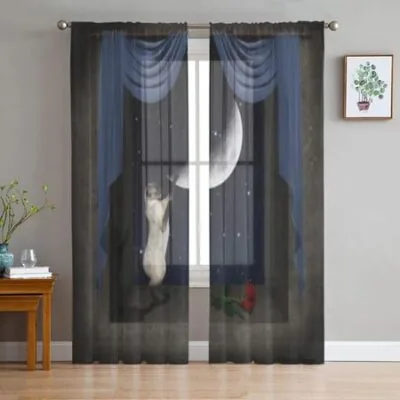 Кошка играет на окне, прозрачные шторы для гостиной, детская спальня, тюлевые шторы, кухонные шторы для окон 135W x 114H(cm)