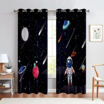 Космический космонавт Звездное небо Ракета Шторы для детей, Спальня, Кабинетное окно, Декоративные, Для мальчиков, Для девочек, Любимые у детей, 2 панели W50X130H(CM)X2PCSRod pocket