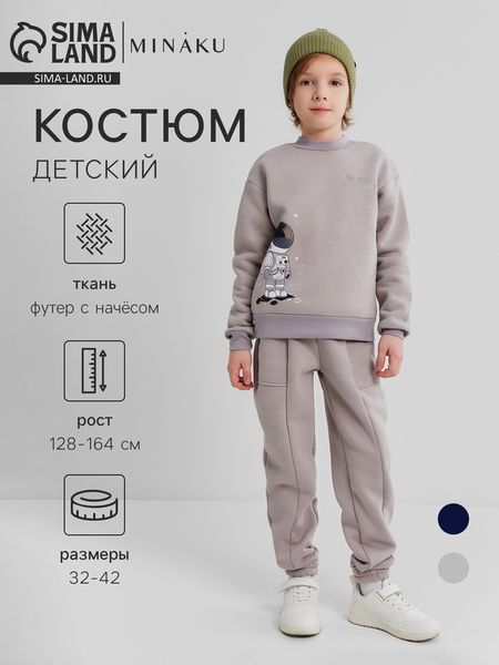 Главная » Все для дома Костюм детский с начёсом (свитшот, брюки) MINAKU: astronaut, серый, рост 164 см Просмотров 1 Костюм детский с начёсом (свитшот, брюки) MINAKU: astronaut, серый, рост 164 см MINAKU