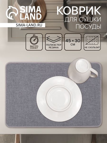 Коврик для сушки посуды серого цвета — это практичный и стильный аксессуар для вашей кухни. Он впитывает влагу, защищая поверхность от воды, и станет надёжным помощником в процессе сушки посуды. Компактный размер делает его удобным для размещения на столешнице или рядом с раковиной.ОсобенностиИзготовлен из полиэстера, который обеспечивает долговечность и устойчивость к износу.Размер 45×30 см идеально подходит для размещения посуды после мытья.Серый цвет легко вписывается в любой интерьер, не теряя внешнего вида со временем.Почему выбирают этот коврик?Коврик для сушки посуды — это не просто аксессуар, а важный элемент кухонного быта. Он помогает содержать рабочую зону в чистоте, предотвращая появление луж и разводов. Благодаря влаговпитывающим свойствам, посуда сохнет быстрее, а поверхность под ковриком остаётся сухой. Прочный материал легко чистить, что делает его гигиеничным и практичным в использовании.Идеальное решение для кухниЭтот коврик сочетает в себе функциональность и эстетику. Он подходит для ежедневного использования, упрощая процесс ухода за посудой и поддерживая порядок на кухне. С ним вы забудете о лишних хлопотах и сможете наслаждаться чистотой и уютом.