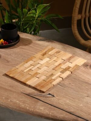 Коврик из тикового дерева размером 30×20 см — идеальное сочетание дизайна и функциональности. Фактурная плетёная поверхность и благородный бежевый оттенок делают его стильным дополнением к любому интерьеру. Прямоугольная форма и натуральный материал обеспечивают гармоничное сочетание эстетики и практичности, а отсутствие искусственных добавок гарантирует экологичность. Произведён вручную в Индонезии, этот коврик станет символом вашего уважения к природе и классическому стилю.ПреимуществаПодходит для использования как подставка под горячее благодаря природной термостойкости дерева.Устойчивая конструкция, обеспечивающая долговечность и надёжность в эксплуатации.Компактные размеры и стильное оформление для легкого включения в обстановку кухни или столовой.Эргономичный дизайн для удобства ежедневного использования.Плетёная структура придаёт уникальный внешний вид и обеспечивает улучшенную вентиляцию основания на любой поверхности.Экологически чистый продукт без токсичных соединений, безопасный для семьи и окружающей среды.Уникальная структура дерева предотвращает скольжение.Способен украсить любую поверхность благодаря своему изысканному дизайну.Созданный вручную с заботой и мастерством, этот коврик из тикового дерева добавит теплоту и естественность в ваш дом. Изготовленный из лучших натуральных материалов, он подчеркнёт вашу приверженность к качеству и деталям. Проверьте истинное мастерство индонезийских мастеров и ощутите надёжность и выгоду от использования натуральных решений. Повысьте уровень комфорта и защиты поверхностей просто и стильно. Ваш дом заслуживает лучшего!