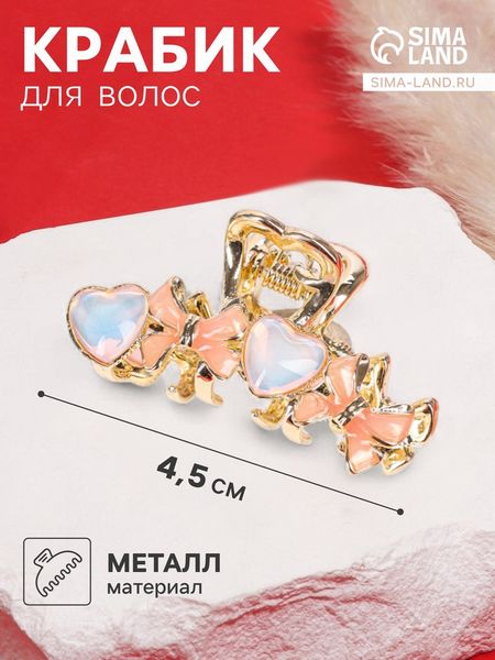 Крабик для волос «Хлоя галант», сердца банты, 4.5 см, золото
