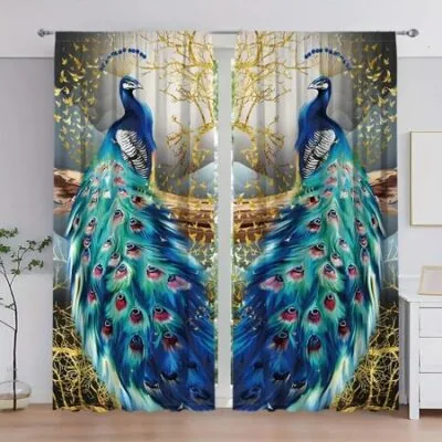 Красивые синие и золотые оконные шторы с изображением павлина, жалюзи для гостиной, спальни, ванной комнаты, двери, домашний декор W65X60H(cm)X2PcsGrommet Top
