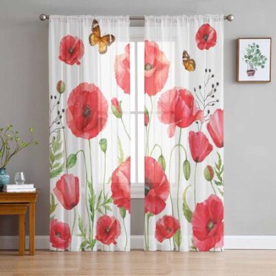 Главная » Все для дома Красные цветочные линии, прозрачные шторы для гостиной, оконные шторы для кухни, тюль, вуаль, шторы из органзы W135 x H115cm x1Grommet Top Просмотров 1 Yiran Furniture