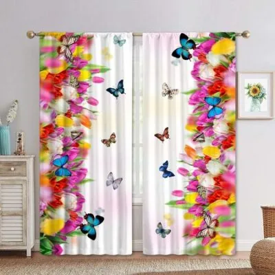 Красные цветы, синие бабочки 3D цифровая печать спальня гостиная окна шторы 2 панели бесплатная доставка 240W270H(CM)95x107inGrommet Top