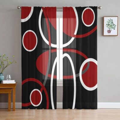 Красные и черные геометрические абстрактные линии, прозрачная вуаль, оконные шторы, тюлевые шторы, украшения для гостиной, балкона, шторы 135W x 114H(cm)
