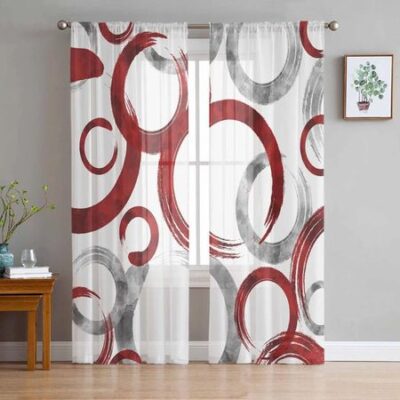 Главная » Все для дома Красные прозрачные шторы с геометрическим рисунком кругов для гостиной, кухни, оконные шторы, тюлевые занавески для спальни, вуали 135W x 114H(cm) Просмотров 1 Yifulin