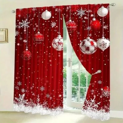 Красные рождественские праздничные шторы — полиэстеровые трикотажные тканые, полупрозрачные шторы с карманами для спальни и гостиной, праздничный Лан 50W160H(CM)x2PanelGrommet Top