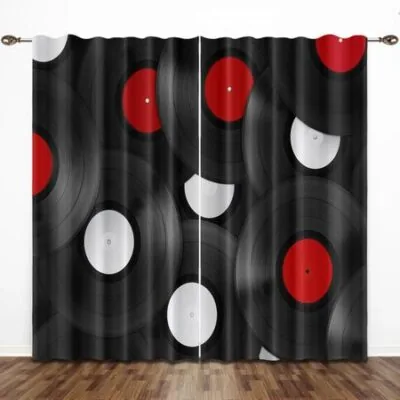 Красочные классические музыкальные винтажные виниловые пластинки CD светофильтрующие шторы оконные занавески для гостиной спальни 2 шт декор 100W160H(CM)40x63inGrommet Top