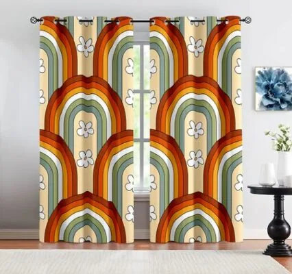 Красочные радужные шторы для спальни Домашние шторы блэкаут для декора комнаты девочки Оконные шторы для детской комнаты дочери Комплект из 2 штук W55 X H120cm X 2Grommet Top