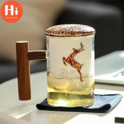 Креативная стеклянная чашка для разделения чая, керамическая чашка с фильтром, крышкой и деревянной ручкой, большая емкость, офисная кофейная кружка, посуда для напитков