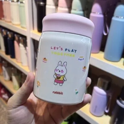 Креативные мультяшные принты Мини термокружка 320 мл Карманная фляга из нержавеющей стали Герметичная Легкая Изолированная бутылка для воды lt;50ml розовый
