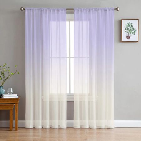 Кремово-фиолетовые градиентные домашние тюлевые шторы для спальни, гостиной, прозрачные шторы с принтом для балкона, летний домашний декор 135W x 114H(cm)