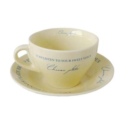 Кремовый цвет Керамическая кружка для кофе Набор чашка и блюдце Ретро Французские буквы Обеденный завтрак Молоко Послеобеденный чай 7-дюймовая десертная тарелка 300ml
