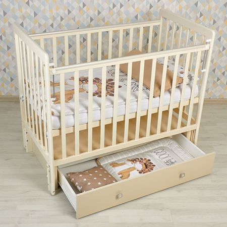 В комплекте накладки ПВХ на бортикиЯщик в основании для игрушек или постельного бельяРеечное ортопедическое основаниеНатуральные материал: массив березыРегулировка ложа по высоте в 2 положенияМаятник универсальный (с возможностью поперечного и продольного качания)