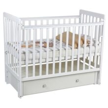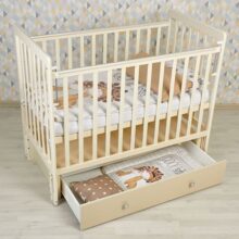 Преимущества:натуральные материалы: массив березы и ЛДСП;3 положения высоты;силиконовые накладки;стандартный размер ложа 120х60 см.;полозья для качания;колесики.Скругленные углы спинок обеспечивают полную безопасность и удобство при использовании.На боковом ограждении присутствует механизм опускания верхней планки, который работает с помощью «кнопки» и обеспечивает легкий доступ к младенцу, что существенно облегчает процесс ухода: не придется низко наклоняться, чтобы уложить или достать малыша.Кроватка устанавливается на колеса (два из которых идут со стопором), благодаря чему ее легко можно перемещать в любое удобное место без особых усилий.Модель оснащена полозьями для качания, обеспечивающими плавные движения, которые напомнят малышу о маминых объятиях и помогут быстрее уснуть. Для доступа к полозьям необходимо отсоединить все 4 колеса.Габариты кроватки с учетом колёс (ДхШхВ) – 124х64х103,2 см.