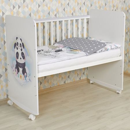 Преимущества:натуральные материалы: массив березы и ЛДСП;3 положения высоты;силиконовые накладки;стандартный размер ложа 120х60 см.;полозья для качания;колесики.Скругленные углы спинок обеспечивают полную безопасность и удобство при использовании.На боковом ограждении присутствует механизм опускания верхней планки, который работает с помощью «кнопки» и обеспечивает легкий доступ к младенцу, что существенно облегчает процесс ухода: не придется низко наклоняться, чтобы уложить или достать малыша.Кроватка устанавливается на колеса (два из которых идут со стопором), благодаря чему ее легко можно перемещать в любое удобное место без особых усилий.Модель оснащена полозьями для качания, обеспечивающими плавные движения, которые напомнят малышу о маминых объятиях и помогут быстрее уснуть. Для доступа к полозьям необходимо отсоединить все 4 колеса.Габариты кроватки с учетом колёс (ДхШхВ) – 124х64х103,2 см.