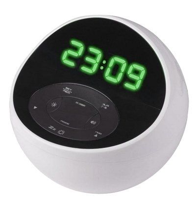 Часы BV-48GWK, разработанные компанией BVItech, сразу бросаются в глаза своим дизайном. Их оригинальная форма в виде незаконченной сферы сможет стать стильным дополнением современного интерьера. А широкие функциональные возможности понравятся всем ценителям комфорта. Представленная модель не только показывает время: здесь есть и радиоприемник, и MP3-проигрыватель, и даже светильник. Управляются часы с помощью удобной электронной панели, расположенной под дисплеем.