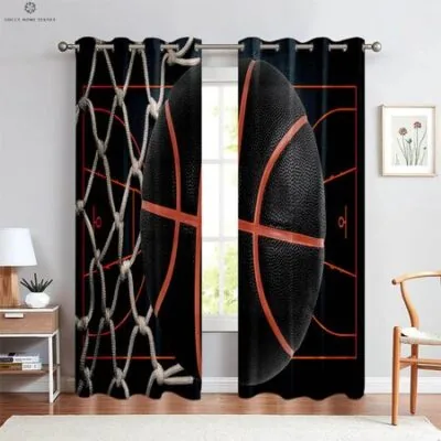 Крутые шторы с 3D-печатью на баскетбольную тематику, подходящие для детской комнаты, гостиной, кухни, спальни, декоративные шторы, 2 штуки W50xH130(CM)x2PCSGrommet Top