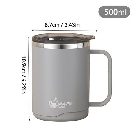 Кружка для кофе из нержавеющей стали 304 с двойными стенками, 500 мл, с крышкой и ручкой, портативная, герметичная, многоразовая чашка для питья 401-500ml серый