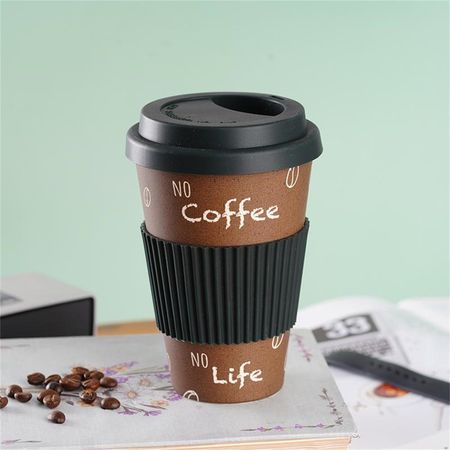 Кружка из термостойкого волокна, кофейные кружки с силиконовой крышкой, чашка для чая с молоком и медведем, посуда, бутылка для воды 470 мл One Size чёрный