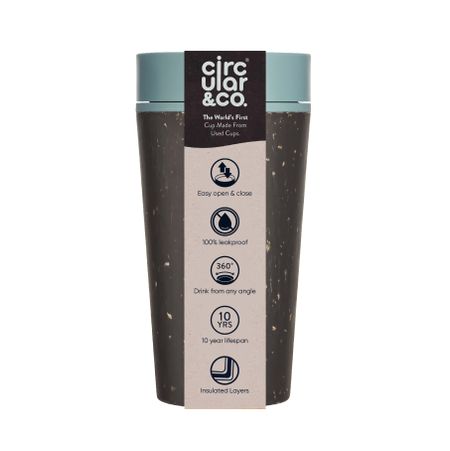 Кружка-тамблер Circular Cup с крышкой 340 мл 12 унций Изолированная крышка Переработанный материал Горлышко 360 градусов Портативный Черный x Синий CC12BB Circular&Co. Одно нажатие 100%