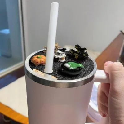 Крышка для стакана 40 унций, аксессуары для декора на Хэллоуин, силиконовая соломенная крышка для стаканов, светящаяся в темноте, привидение, маленькое животное, ландшафтный дизайн, подарок для чёрный
