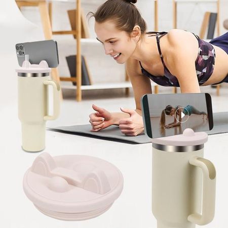 Крышка для стакана 40 унций, сменная силиконовая многофункциональная крышка для стакана с держателем для телефона, можно мыть в посудомоечной машине, непроливаемая крышка для стакана Stanley розовый