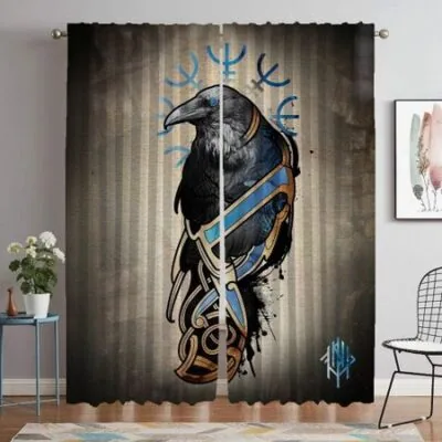 Кухонные шторы для гостиной Шторы Викинги Одины Вороны Мунинн Раздел Хэллоуин Украшения Оттенки Тюль для спальни W60xH90cmx2pcs-CL
