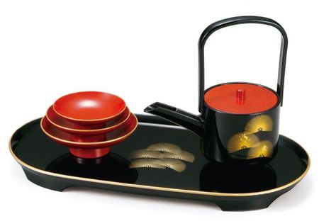 Лак Маэдзю Новое саке черное саке саке и новое саке Традиционное ремесло Сделано в Японии Годовая чаша, сосна, (набор чашка, чашка, подставка года) чёрный