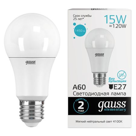 Главная » Все для дома лампа GAUSS Elementary 15Вт E27 LED 1450Лм 4100K A60 шар Просмотров 1 Мощность: 15Вт Цоколь: E27 Световой поток: 1450Лм Цветовая температура: нейтральный свет Цветовая температура: 4000К Напряжение: 240В GAUSS