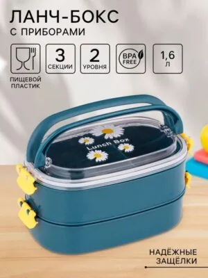 Идеальный обед в двух уровнях: все под контролемПредставляем ланч-бокс, который превратит каждый школьный обед в настоящее удовольствие. Этот двухъярусный контейнер создан для тех, кто ценит порядок и разнообразие в еде. Он поможет вам организовать полноценное и вкусное питание, где бы вы ни находились.Почему этот ланч-бокс — ваш лучший выбор?Двойное пространство: Два уровня позволяют удобно разместить разные блюда, сохраняя их свежесть.Всё в комплекте: Включает необходимые столовые приборы, всегда готовые к использованию.Герметичность и надежность: Крышка плотно прилегает и предотвращает проливание, сохраняя еду свежей.Продуман до мелочей: Можно использовать в СВЧ-печи и мыть в посудомоечной машине, что экономит ваше время.Комфорт и стиль каждый деньЭтот ланч-бокс не только практичен, но и привлекателен. Зеленый цвет и стильный рисунок делают его ярким аксессуаром, а прозрачная крышка позволяет видеть содержимое. Объем в 1.6 литра обеспечит полноценный обед, а двухъярусная конструкция разделит блюда, чтобы сохранить их вкус.Преимущества, которые говорят сами за себяДвухуровневый дизайн: Оптимальное использование пространства для разнообразных блюд.Полный комплект: Включает столовые приборы для удобства обеда в любом месте.Универсальность: Подходит для использования в микроволновой печи и посудомоечной машине.Герметичность: Обеспечивает надежное хранение и предотвращает проливание.Идеальный спутник для школьникаЗабудьте про неудобные пакеты и контейнеры! Этот ланч-бокс станет незаменимым помощником, обеспечивая возможность наслаждаться вкусным и разнообразным обедом. Теперь каждый перекус будет не только полезным, но и приятным.