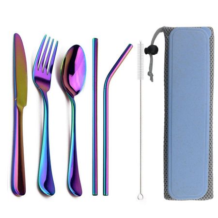 Легкий портативный набор столовых приборов из 8 предметов, набор столовых приборов из нержавеющей стали, нож, вилка, ложка, соломинка, чистая щетка с дорожной сумкой разноцветный