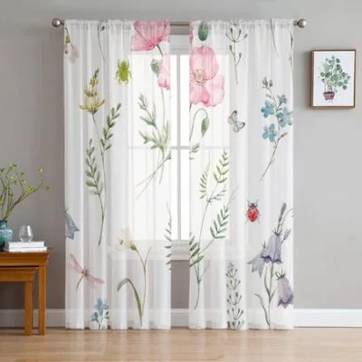 Лепестки цветов, божья коровка, стрекоза, насекомое, прозрачные шторы для гостиной, современные вуалевые шторы, шторы для спальни, тюль, занавески для окон W135 x H244cm