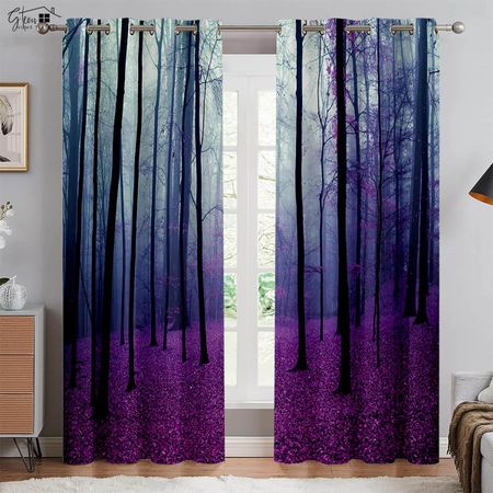 Лесные 3D-занавески с изображением леса, пейзажа, зеленого солнца, осени, кленовых листьев, природы, жизненной силы, кармана для переноски, легко стирать, занавески W50xH130(CM)x2PCSRod pocket