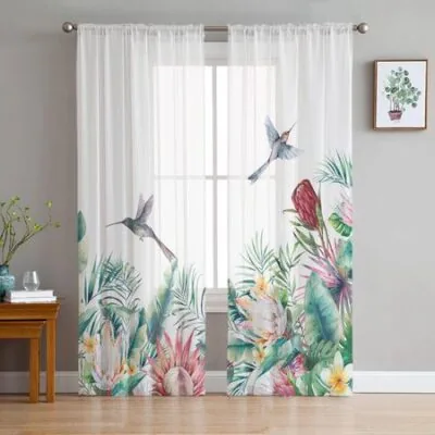 Летние тропические растения влажных лесов Прозрачные шторы для гостиной Современный домашний декор Тюль Шторы для спальни Вуаль Шторы W135 x H114cm