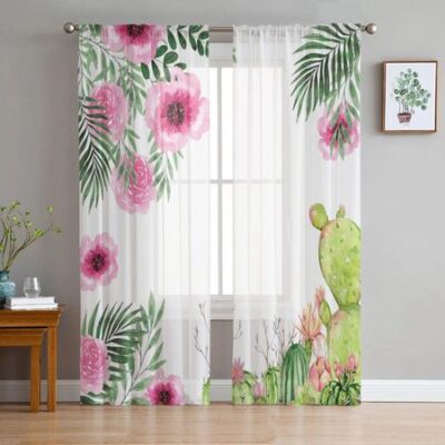 Летние тропические занавески с цветком кактуса, тюлевые декоративные прозрачные шторы для гостиной, спальни, кухни, отеля, оконные панели для дома 135W x 114H(cm)