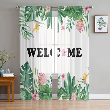 Летняя тюлевая занавеска с листьями черепахи и тропическими растениями для гостиной, кухни, спальни, прозрачный тюль для кафе, отеля, современный домашний декор 135W x 114H(cm)