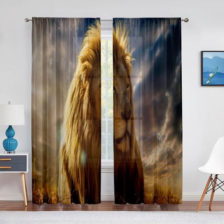 Лев Величественный король дикой природы шифоновые прозрачные шторы для гостиной спальни украшения дома оконные вуали тюлевые шторы 1 PCS W100XH250cm&Rod Pocket