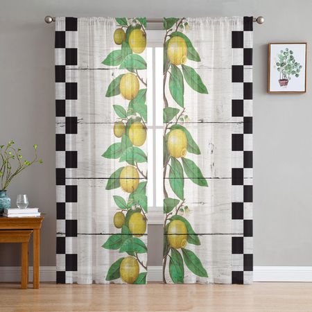 Лимонный фрукт ретро древесное зерно клетчатый прозрачный тюль оконные шторы для гостиной спальни кухни вуалет занавеска украшение дома W135 x H114cm