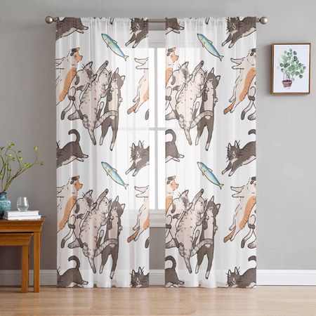 Line Cat Flower Animal Fish Спальня Шторы Тюль Прозрачные Шторы Гостиная Домашний Декор Вуаль Шторы 135W x 114H(cm)