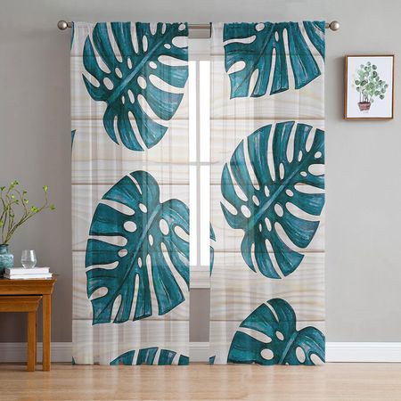 Лизиантус Цветок Пальмовые Листья Шторы Для Гостиной Роскошные Тюль Шторы Для Детской Спальни Кухни Комнаты Современный Стиль Прозрачные Шторы 135W x 114H(cm)