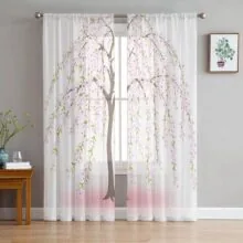 Ветка сливового дерева коричневые розовые современные тюлевые шторы для гостиной, спальни, дома, кухни, прозрачные шторы 135W x 244H(cm)x2