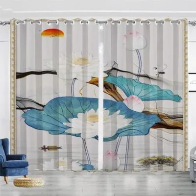 Lotus Pond Китайский Стиль Гостиная Тень Шторы Спальня Домашнее Украшение Чернила Lotus Цифровая Печать Тонкие Шторы 100W130H(CM)40x51inGrommet Top